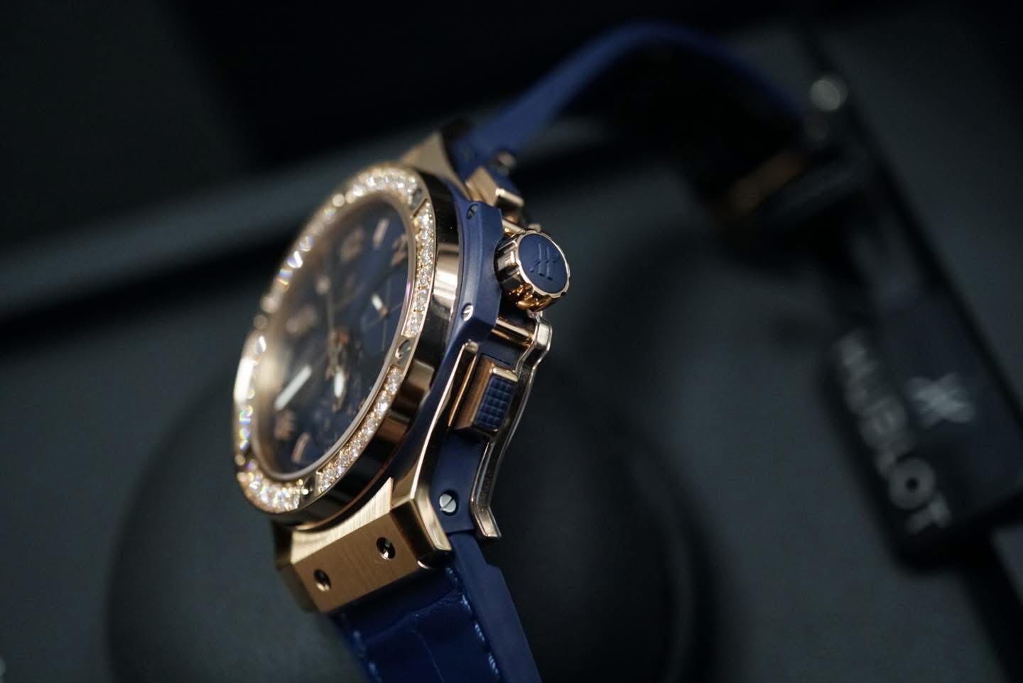 Điểm nhấn của mẫu Big Bang này chính là vành bezel nạm 36 viên kim cương tổng cộng 1.80 carat, được chế tác sắc lẹm giúp từng góc sáng đều phản chiếu mạnh mẽ dưới ánh sáng. Kết hợp với sắc vàng hồng 5N độc quyền của Hublot, chiếc đồng hồ toát lên vẻ đẹp quyền lực – thời thượng – cực kỳ sang trọng.