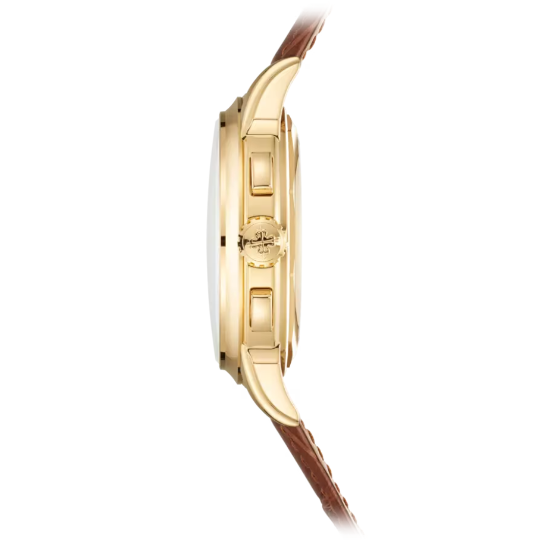 Patek Philippe 5270J-001 sở hữu bộ vỏ được chế tác từ vàng vàng 18K, mang lại vẻ đẹp cổ điển và đẳng cấp.