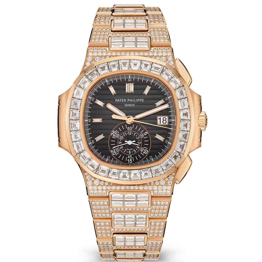 Những mẫu Nautilus Flyback Chronograph nạm kim cương vàng hồng như 5980/1400R-011 luôn nằm trong danh sách “grail watch” của giới sưu tầm.